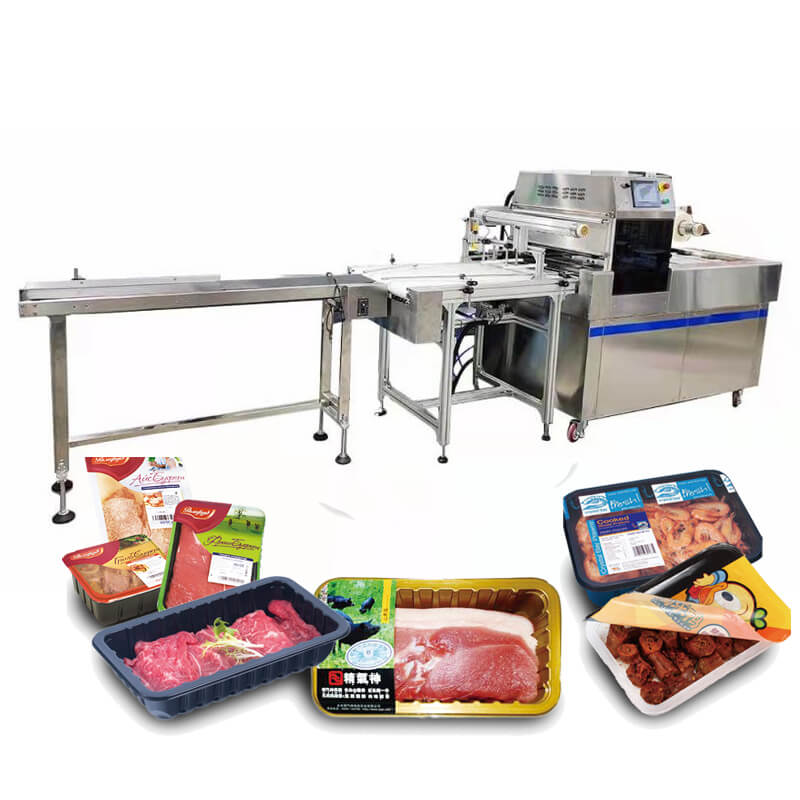Adopt flow conveying packaging, output three trays at a time. No need to manually place trays, more efficient packaging. Suitable for businesses with high requirements for packaging speed and automation